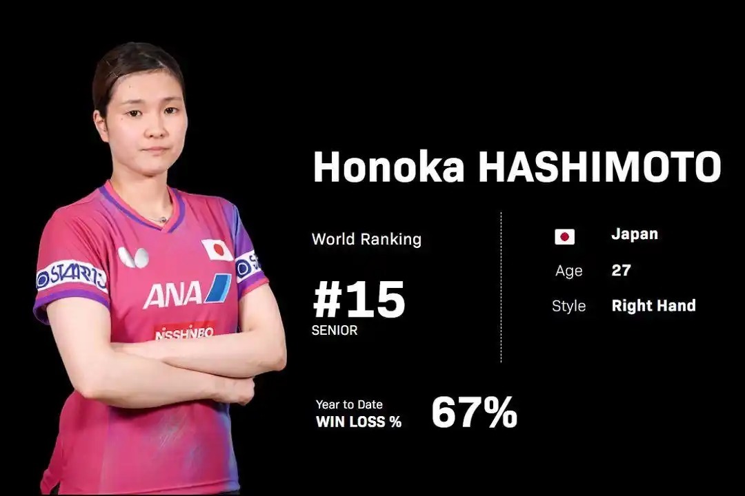 同样迎来首秀的还有27岁的桥本帆乃香(Honoka HASHIMOTO,世排15位),她是日本女队中年龄最大的选手,但队内排名第三。这位削球手有些大器“晚”成,近年来才成绩表现突出,给中国女乒造成了一些困难。