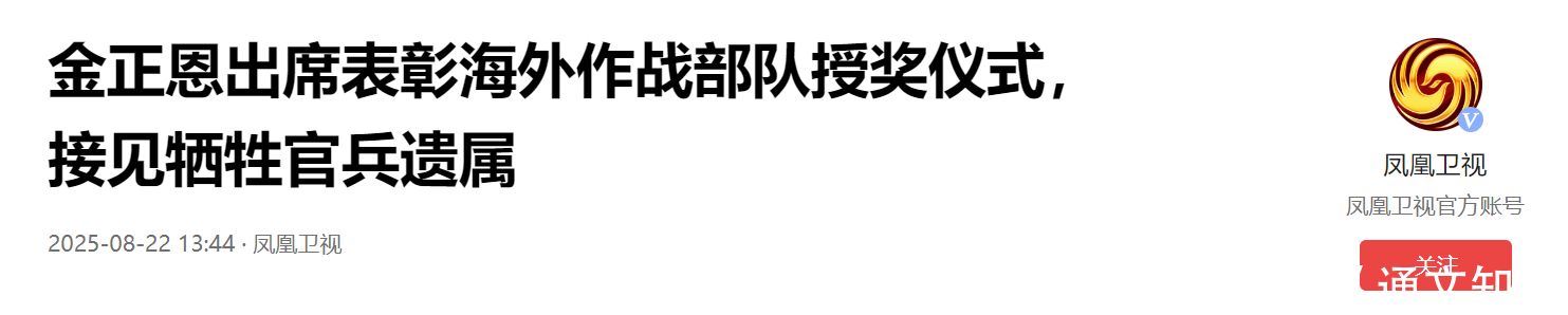 信息来源:金正恩出席表彰海外作战部队授奖仪式,接见牺牲官兵遗属