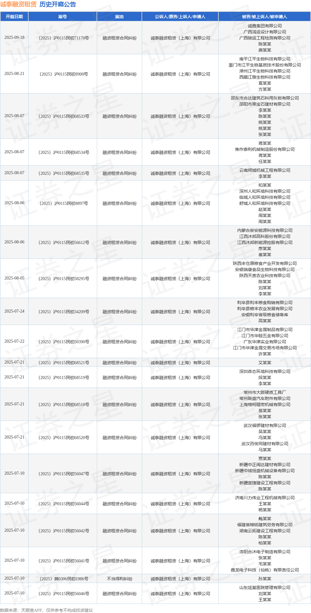 本站消息网上配资门户,根据天眼查APP显示网上配资门户,近日公布了一则诚泰融资租赁(上海)有限公司作为原告/上诉人的开庭公告,详细内容如下: