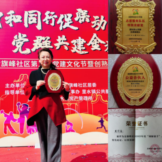 活动现场,金旗峰社区为促进会颁发“2025年度公益合伙人”奖牌,表彰其在社区家庭教育普及、亲子和谐促进等方面的突出贡献。这一荣誉彰显了“党建引领、创熟聚力、公益赋能”的联动模式,促进会以专业服务搭建起家庭与社区的沟通桥梁,为基层治理注入育人动力。