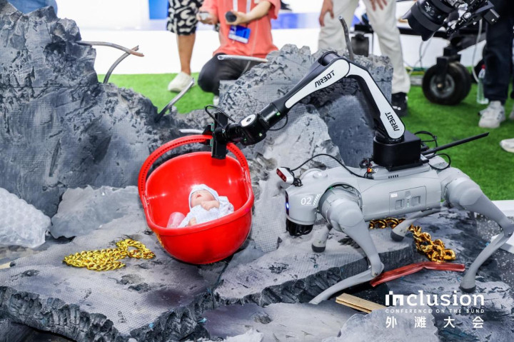 机器人翻越崎岖高地,操作电箱闸刀,安插火药雷管,甚至还在废墟中成功救出“婴儿”——这不是科幻电影,而是9月10日外滩大会AI科创赛“机器人职业技能表演赛”上演的真实画面。本次赛事由蚂蚁数科承办,4家具身智能厂商的机器人轮番登场,在模拟真实工业与救援场景的高难度任务中展开角逐,完整流畅的操作与温情场景赢得观众掌声。