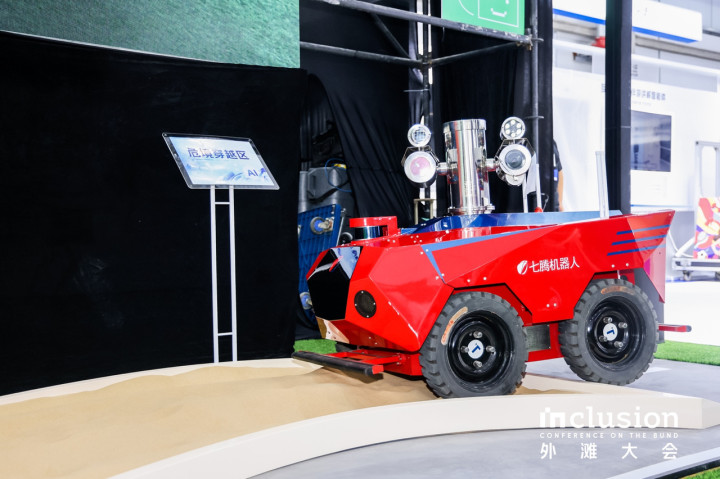 首先登场的是七腾机器人挑战“危境穿越”任务,它需要模拟在崎岖沙地行走、上坡与下台阶。轮式底盘虽有晃动却迅速调整恢复,引来观众阵阵赞叹。赛事出题人、蚂蚁数科AI智能终端资深专家梁子在点评时指出:该任务是希望机器人可以代替人类进入人迹罕至的野外勘探场景,非常考验机器人的运动控制与环境感知,七腾的快速响应体现出了良好的算法基础。
